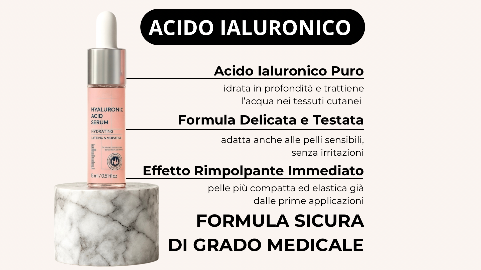 Siero concentrato a base di Acido Ialuronico ad alto potere idratante.